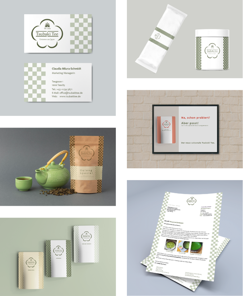 Hier sehen Sie ein Beispiel für Brand Idenitity für einen fiktiven Teehersteller, das ich erstellt habe.
