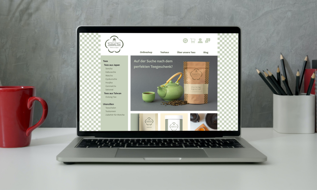 Hier sehen Sie ein Beispiel für die Gestaltung der Webseite für einen fiktiven Teehersteller, der Tees aus Japan vertreibt.